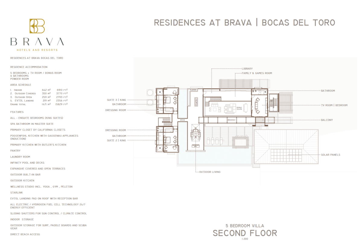 The Luxury Private Residences at Brava Resorts elevate tropical living to new heights with their expansive 1,000-square-meter design, seamlessly integrating 600 square meters of refined interior space with 400 square meters of covered exterior verandahs and decks.